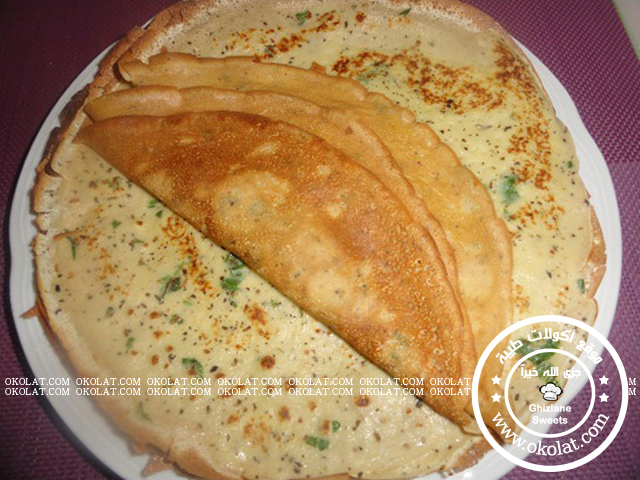 - نسخن المقلاة وندهنها بنصف ملعقة من الزبدة. و بإستخدام مغرفة صغيرة نصب الخليط في المقلاة الساخنة ونحركها في جميع الإتجاهات حتى يوزع الخليط على كل قعرها.