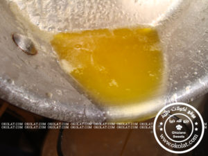 - نذيب الزبدة ونتركها تتحمر بعض الشيء، ثم نضع جميع المقادير في الخلاط الكهربائي ونضيف له الزبدة الذائبة باستثناء ملعقتين من الزبدة.. ونخلط الكل جيدا.