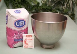 - نخلط الجيلاتين مع 1 كوب سكر جيدا .