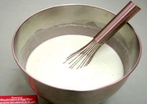 - نضع على نار متوسطة كوبين من الحليب و عندما يقترب من الغليان، نضيف له خليط السكر و الجيلاتين ونحرك جيدا حتى يذوبا في الحليب.