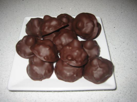 - نسيح شيكولاتة المطبخ ( السوداء ) على نار هادئة أو على حمام مائي ونغطس وحدات الشيكولاته بالشوكه .