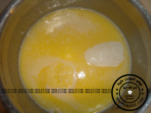 - نسخن الحليب مع الزبدة حتى الغليان.